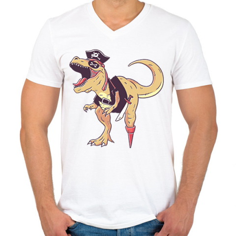 1 kép PRINTFASHION Kalóz dínó - Férfi V-nyakú póló - Fehér