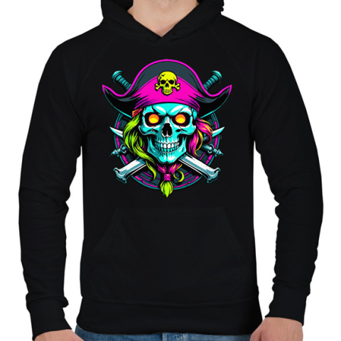 1 kép PRINTFASHION kalóz - Férfi kapucnis pulóver - Fekete