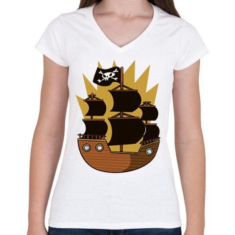 1 kép PRINTFASHION Kalóz hajó - Női V-nyakú póló - Fehér