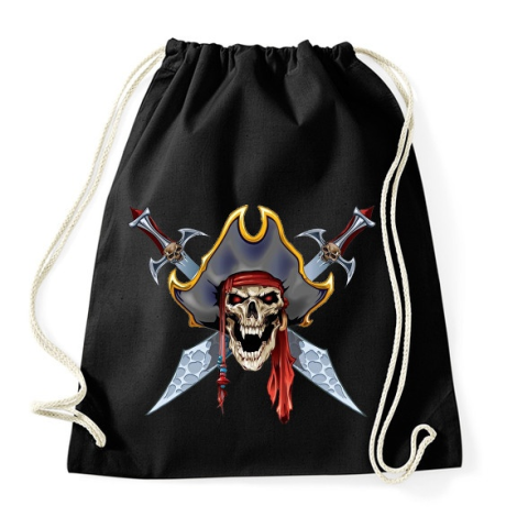 1 kép PRINTFASHION Kalóz kardos koponya - Sportzsák, Tornazsák - Fekete