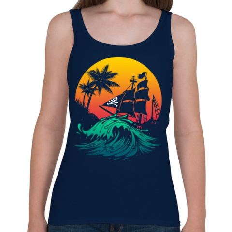 1 kép PRINTFASHION Kalózhajó a napnyugtában - Női atléta - Sötétkék