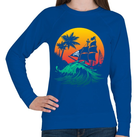 1 kép PRINTFASHION Kalózhajó a napnyugtában - Női pulóver - Királykék