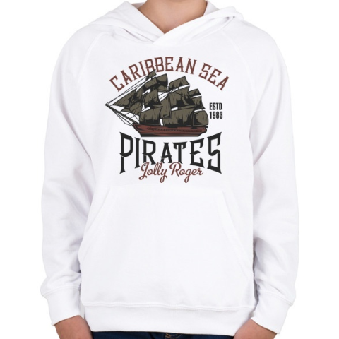 1 kép PRINTFASHION Kalózhajó - Caribbean Sea - Gyerek kapucnis pulóver - Fehér