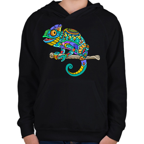 1 kép PRINTFASHION Kaméleon - Gyerek kapucnis pulóver - Fekete