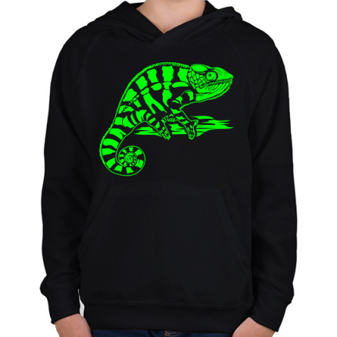 1 kép PRINTFASHION kaméleon - Gyerek kapucnis pulóver - Fekete