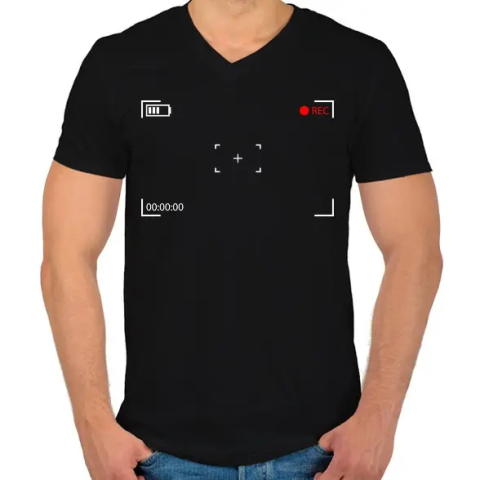 1 kép PRINTFASHION Kamera kereső fehér - Férfi V-nyakú póló - Fekete