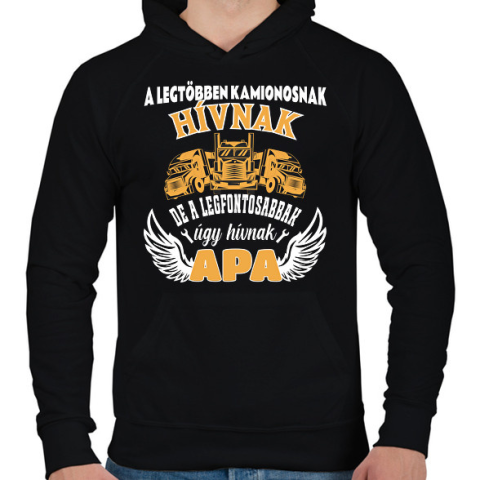 1 kép PRINTFASHION Kamionos apa - Férfi kapucnis pulóver - Fekete