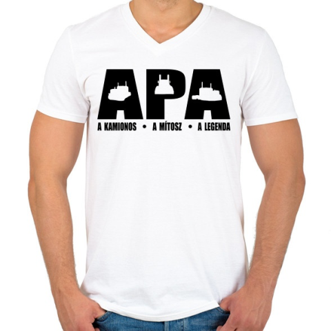 1 kép PRINTFASHION Kamionos apuka - Férfi V-nyakú póló - Fehér