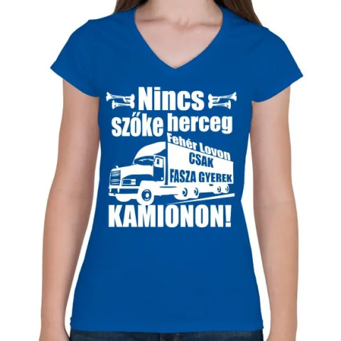 1 kép PRINTFASHION Kamionos Fehér - Női V-nyakú póló - Királykék