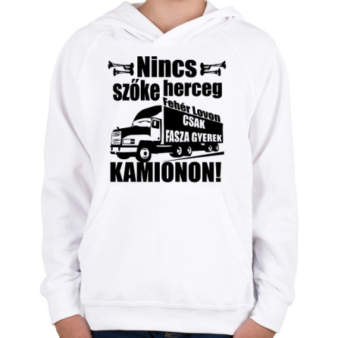 1 kép PRINTFASHION kamionos fekete - Gyerek kapucnis pulóver - Fehér