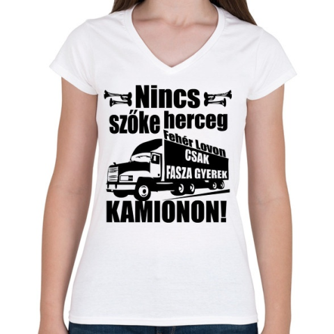 1 kép PRINTFASHION kamionos fekete - Női V-nyakú póló - Fehér