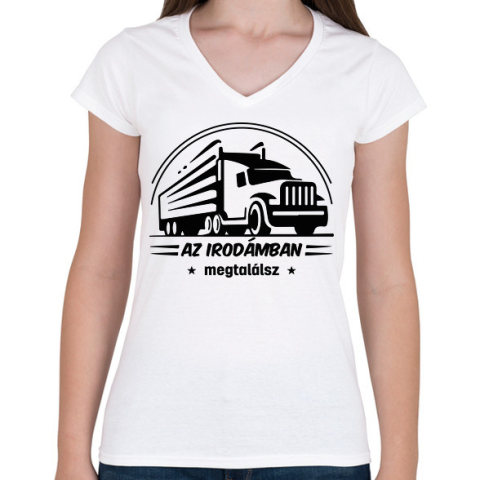 1 kép PRINTFASHION Kamionos iroda - Női V-nyakú póló - Fehér