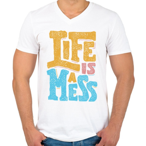 1 kép PRINTFASHION Káosz - Férfi V-nyakú póló - Fehér