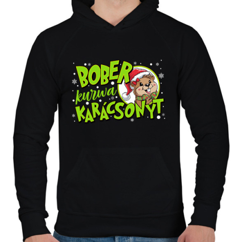 1 kép    PRINTFASHION Karácsony Bober xmas - Férfi kapucnis pulóver - Fekete