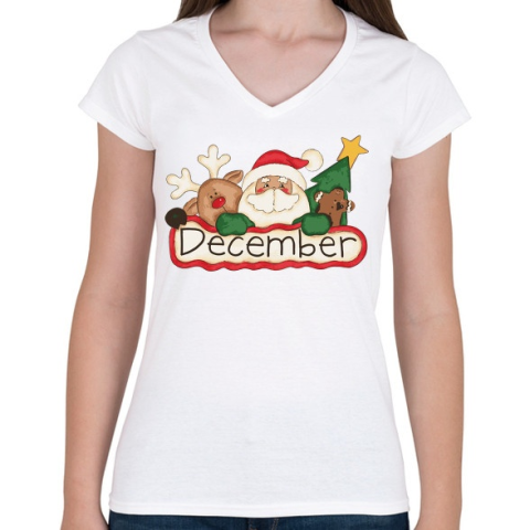 1 kép PRINTFASHION Karácsony - December Mézi Télapó Rénszarvas - Női V-nyakú póló - Fehér