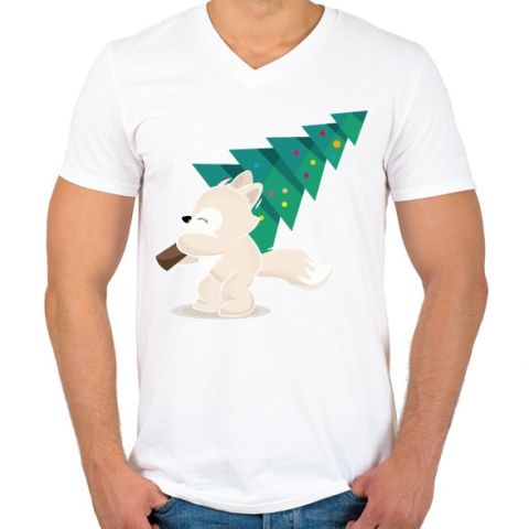 1 kép PRINTFASHION Karácsony - kis rókával - Férfi V-nyakú póló - Fehér