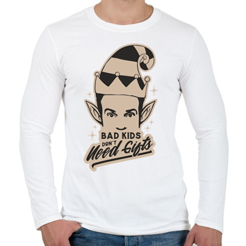 1 kép PRINTFASHION Karácsony - Rossz gyerekek nem akarnak ajándékot - Férfi hosszú ujjú póló - Fehér