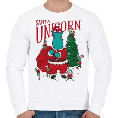 1 kép PRINTFASHION Karácsony - télapó unikornis - Férfi pulóver - Fehér