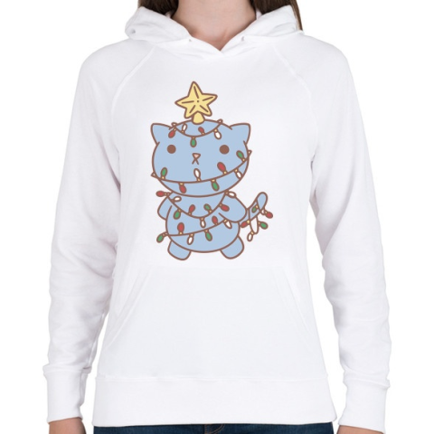 1 kép PRINTFASHION Karácsonyfa cica - Női kapucnis pulóver - Fehér
