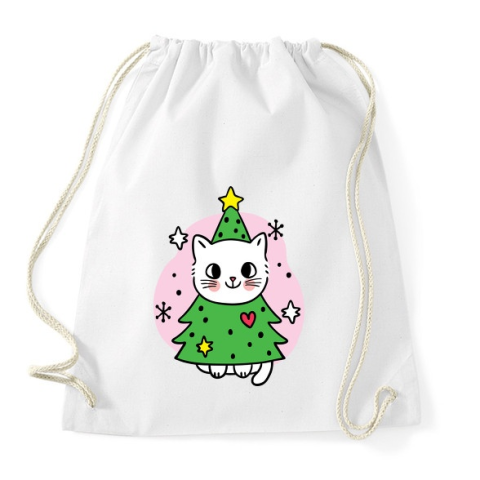 1 kép PRINTFASHION Karácsonyfa cica - Sportzsák, Tornazsák - Fehér