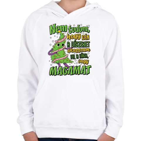 1 kép PRINTFASHION Karácsonyfa dísz - Gyerek kapucnis pulóver - Fehér