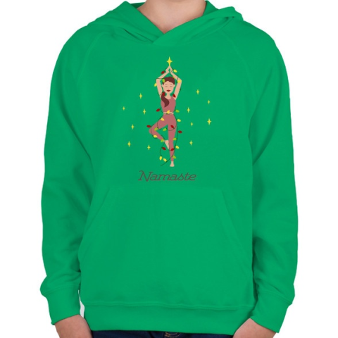 1 kép PRINTFASHION Karácsonyfa jóga póz - Gyerek kapucnis pulóver - Zöld