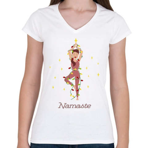 1 kép PRINTFASHION Karácsonyfa jóga póz - Női V-nyakú póló - Fehér