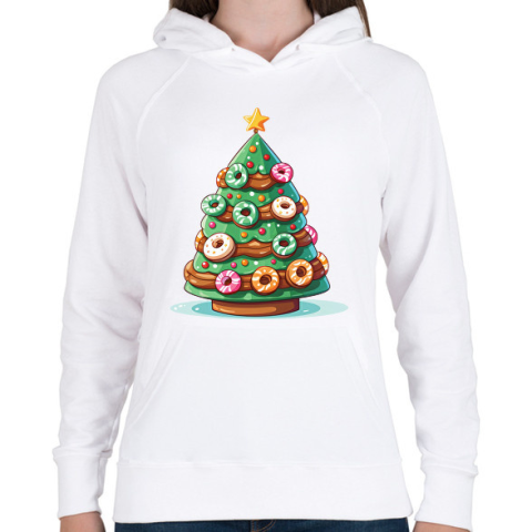 1 kép PRINTFASHION Karácsonyfánk - Női kapucnis pulóver - Fehér
