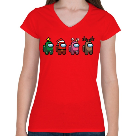 1 kép PRINTFASHION Karácsonyi among us - Női V-nyakú póló - Piros