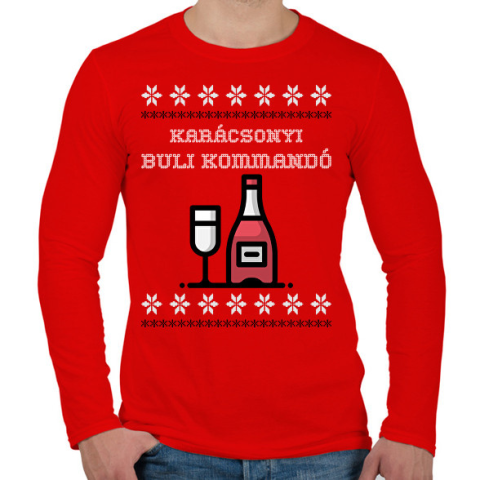 1 kép PRINTFASHION KARÁCSONYI BULI KOMMANDÓ - Férfi hosszú ujjú póló - Piros
