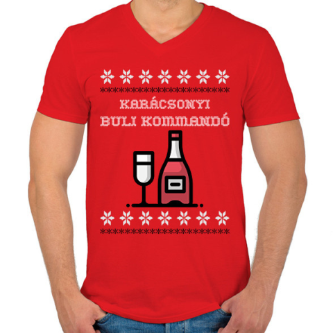 1 kép PRINTFASHION KARÁCSONYI BULI KOMMANDÓ - Férfi V-nyakú póló - Piros