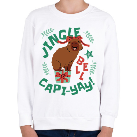 1 kép PRINTFASHION Karácsonyi capybara - Gyerek pulóver - Fehér