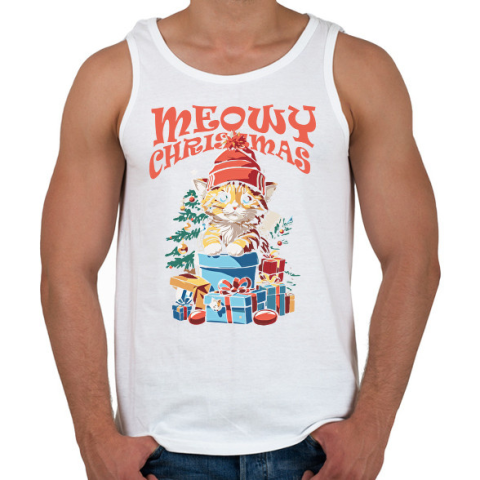 1 kép PRINTFASHION Karácsonyi cica - Férfi atléta - Fehér