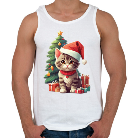 1 kép PRINTFASHION Karácsonyi cica - Férfi atléta - Fehér