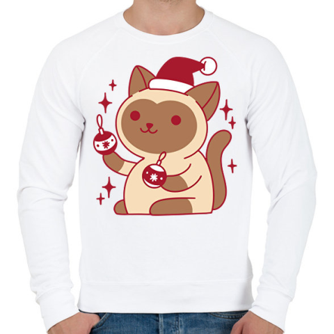 1 kép PRINTFASHION Karácsonyi cica - Férfi pulóver - Fehér