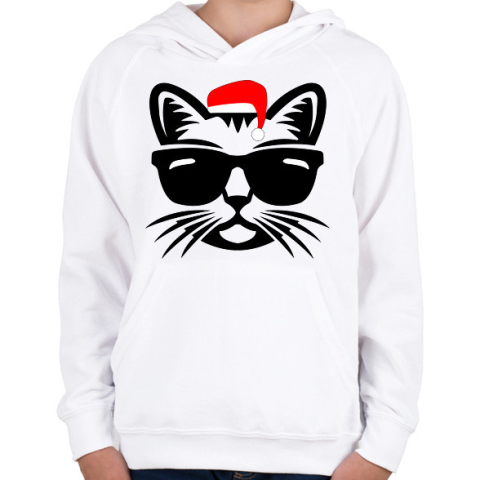 1 kép PRINTFASHION Karácsonyi cica - Gyerek kapucnis pulóver - Fehér