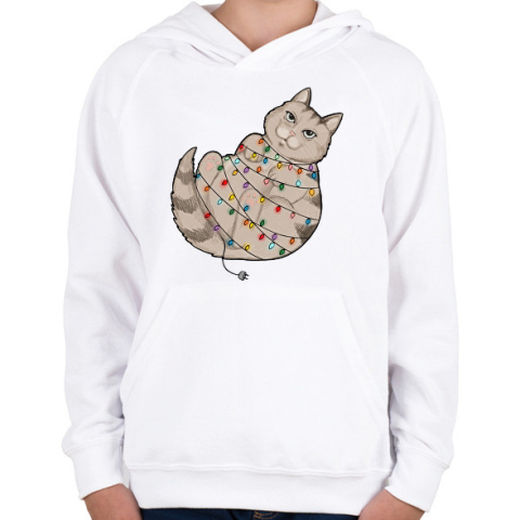 1 kép PRINTFASHION Karácsonyi cica - Gyerek kapucnis pulóver - Fehér