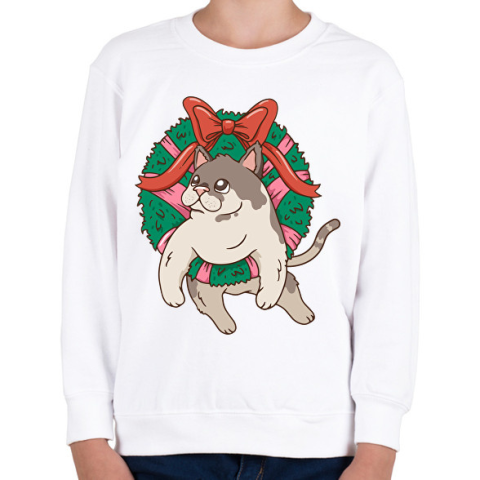 1 kép PRINTFASHION Karácsonyi cica - Gyerek pulóver - Fehér