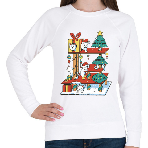 1 kép PRINTFASHION Karácsonyi cica ház - Női pulóver - Fehér