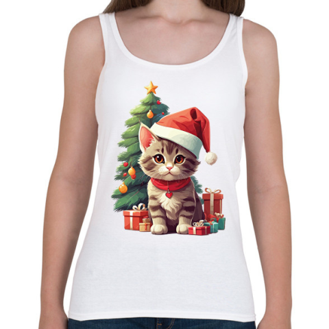 1 kép PRINTFASHION Karácsonyi cica - Női atléta - Fehér