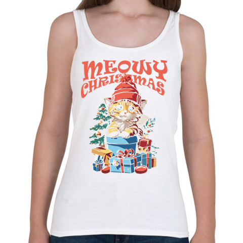 1 kép PRINTFASHION Karácsonyi cica - Női atléta - Fehér