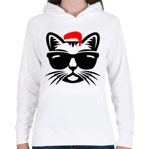 1 kép PRINTFASHION Karácsonyi cica - Női kapucnis pulóver - Fehér