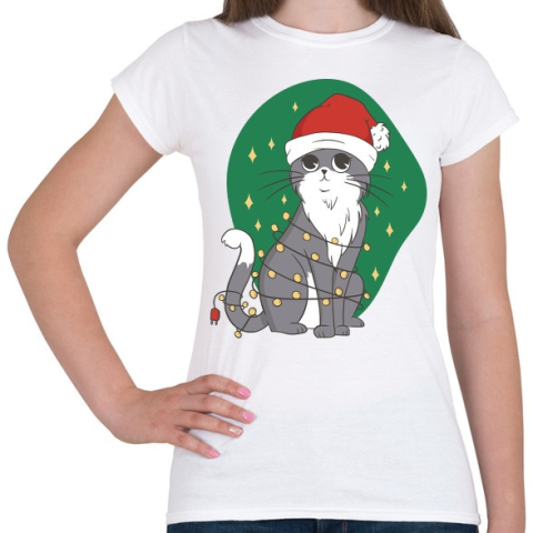 1 kép PRINTFASHION Karácsonyi cica - Női póló - Fehér