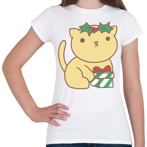 1 kép PRINTFASHION Karácsonyi cica - Női póló - Fehér