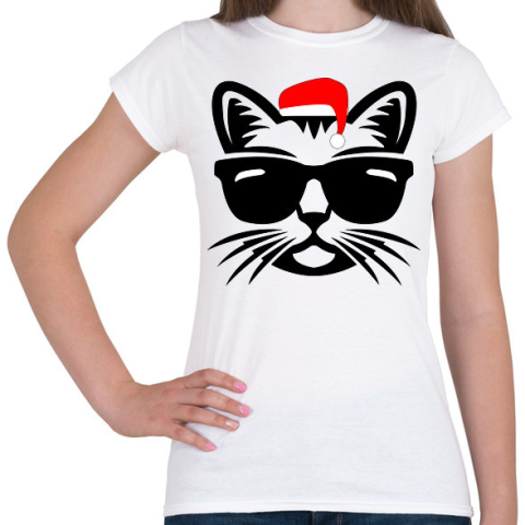 1 kép PRINTFASHION Karácsonyi cica - Női póló - Fehér
