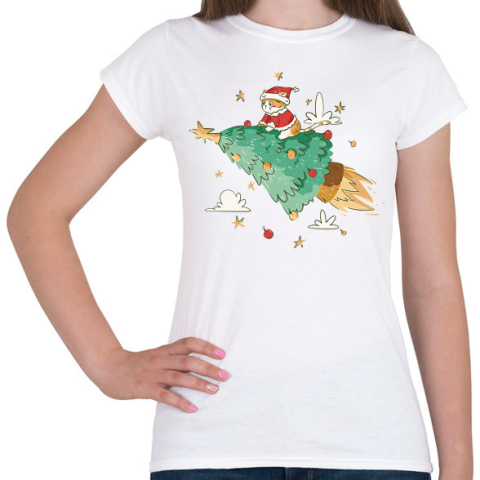 1 kép PRINTFASHION Karácsonyi cica - Női póló - Fehér