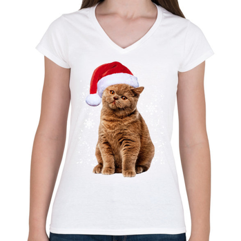 1 kép PRINTFASHION Karácsonyi cica - Női V-nyakú póló - Fehér