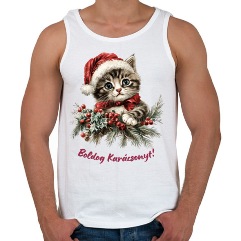 1 kép PRINTFASHION Karácsonyi cica sapiban - Férfi atléta - Fehér