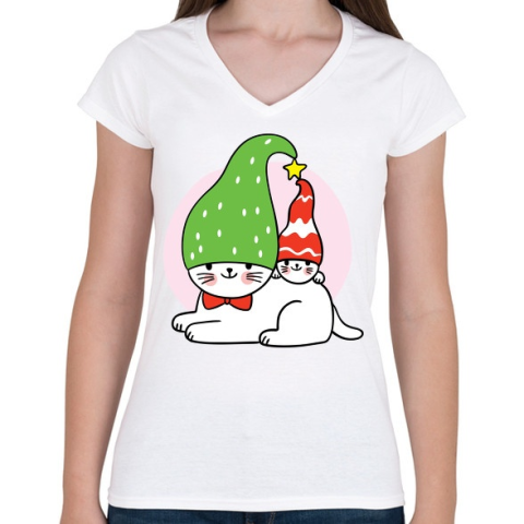 1 kép PRINTFASHION Karácsonyi cicák - Női V-nyakú póló - Fehér