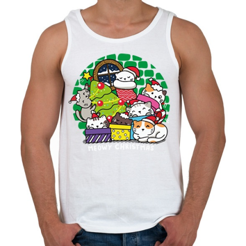 1 kép PRINTFASHION Karácsonyi cicás- Meowy - Férfi atléta - Fehér